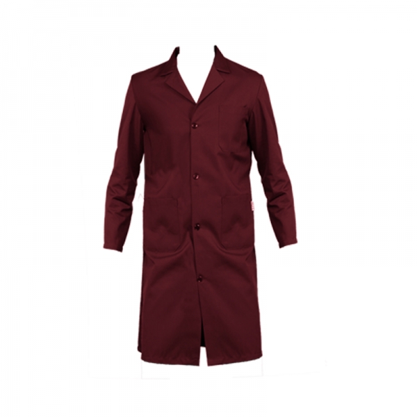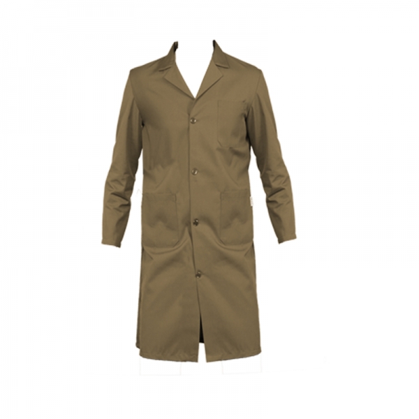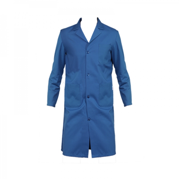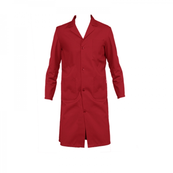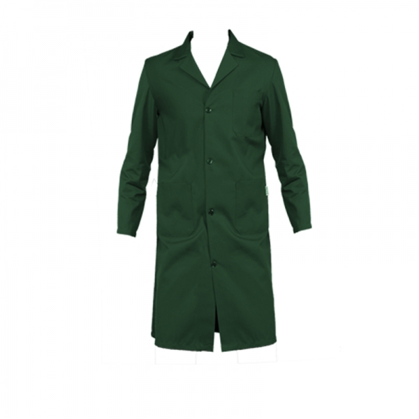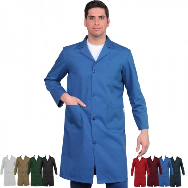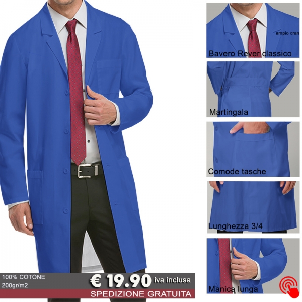Taschino sul pettoDue tasche davantiColletto coda di rondineChiusura centrale con automatici coperti antipanicoPolsini con elasticoAntiacido TESSUTO100% cotone 200 gr/mq