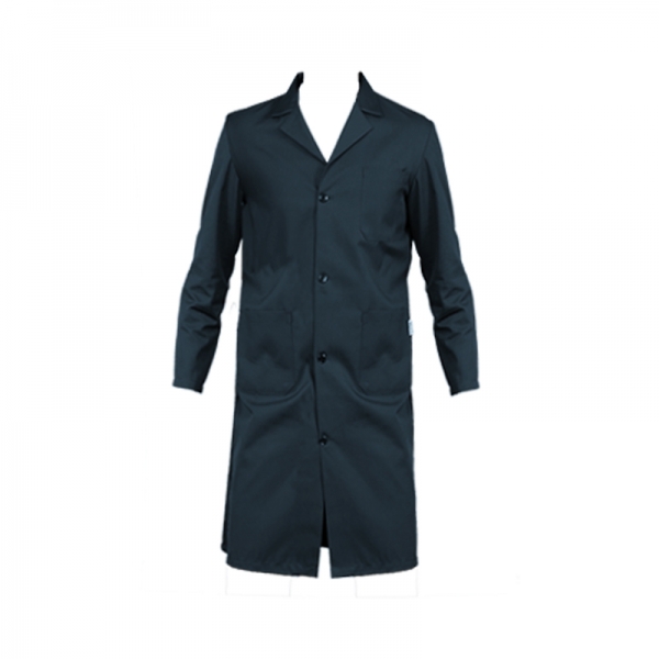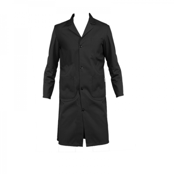 DETTAGLI - TASCHINO SUL PETTO - 2 TASCHE DAVANTI - COLLETTO CODA DI RONDINE - CHIUSURA NASCOSTA CON AUTOMATICI - POLSINI CON ELASTICO - MARTINGALA POSTERIORE TAGLIE XS-XXL TESSUTO 35% COTONE - 65% POLIESTERE 200 GR/MQ