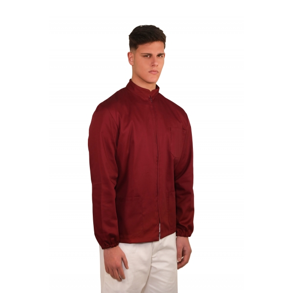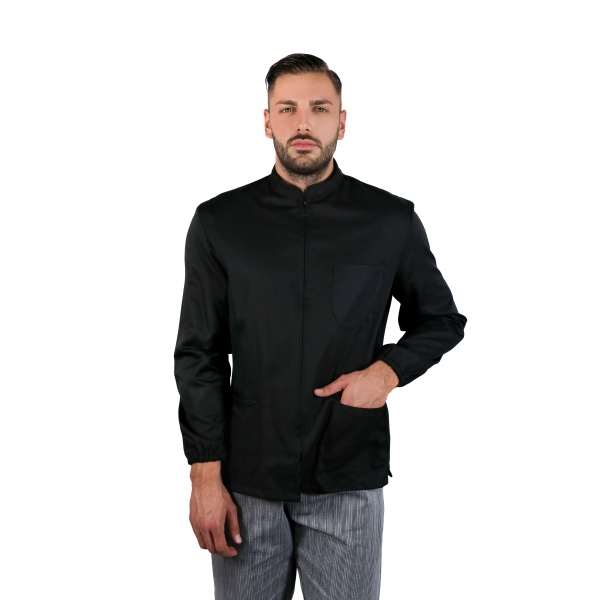 DETTAGLI Colletto coreana, chiusura laterale con bottoni automatici, taschino sul petto, due tasche davanti TESSUTO35% cotone- 65% poliestere160 gr/mq