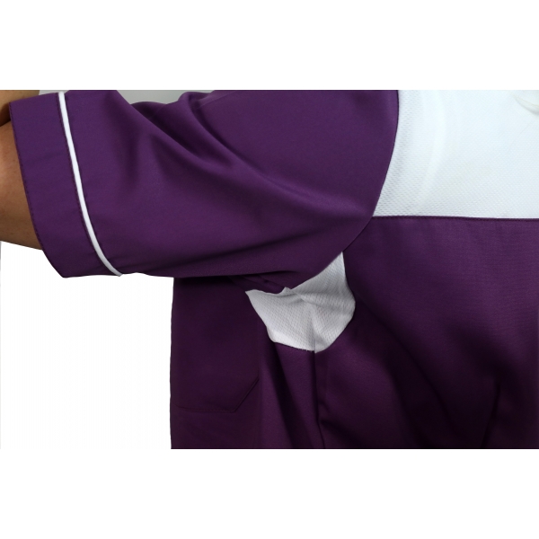 Dettagli Colletto coreana, chiusura laterale con bottoni clips, due tasche davantiTessuto35% Cotone - 65% Poliestere160 gr/mq