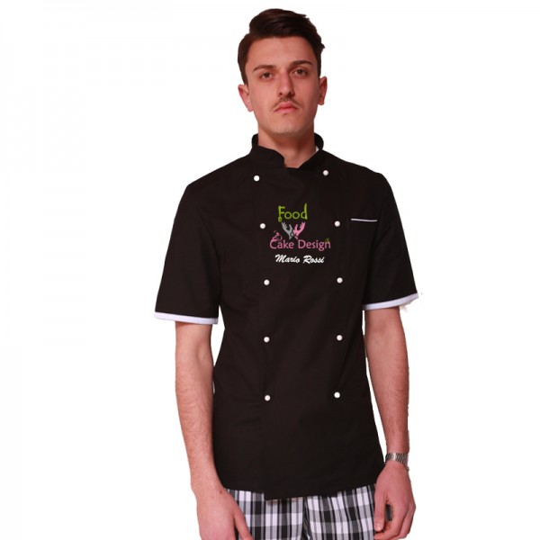 GIACCA UOMO COLORE NERO CON PROFILO BIANCO - IN COTONE 100% - CON BOTTONI AD ESTRAZIONE RAPIDA, MEZZA MANICA