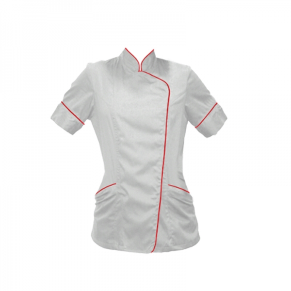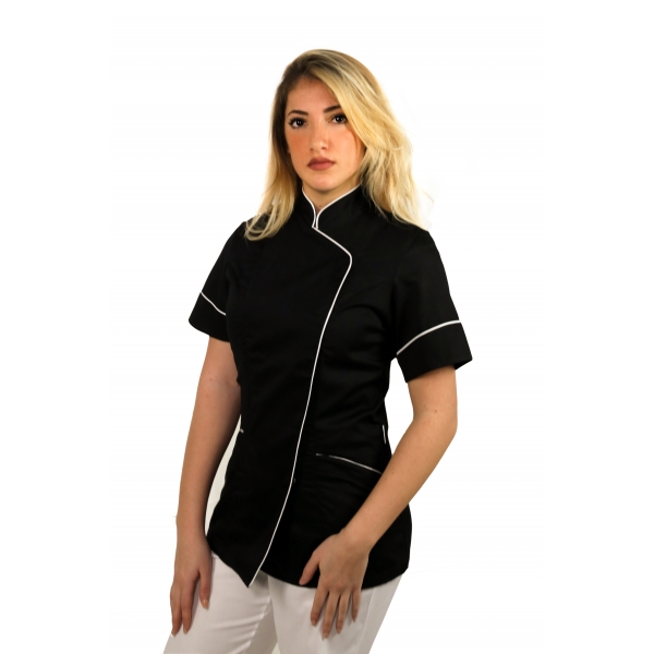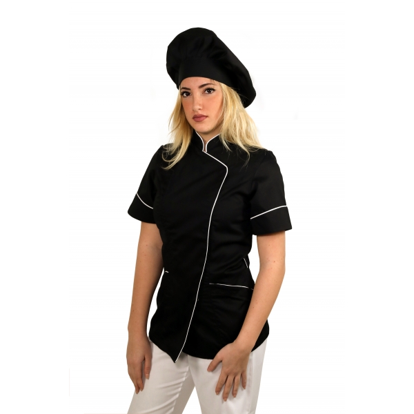 GIACCA CHEF Modello donna, sciancrata ai fianchi, finiture al colletto, finiture cuori, bottoni a funghetto, 100 % cotone, 160 gr/m2, taglie disponibili XS - XXL