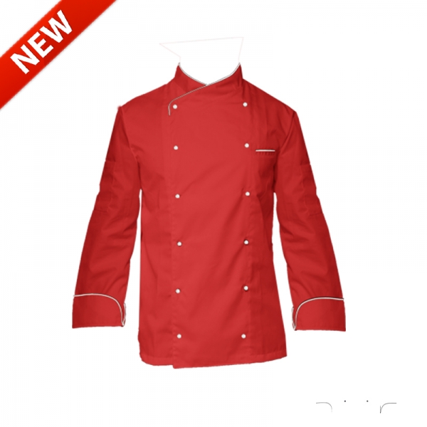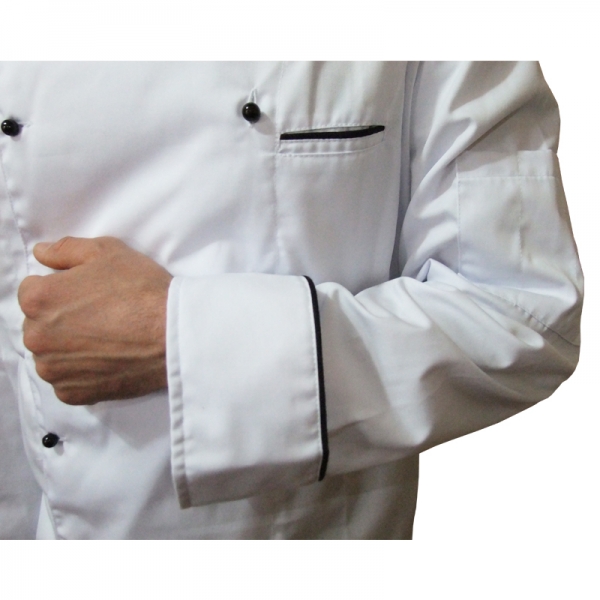GIACCA CHEF Abbottonatura laterale, bottoni a funghetto, maniche accorciabili con bottoncino, 65% poliestere - 35% cotone, 200 gr/m2, taglie disponibili XS - XXXL