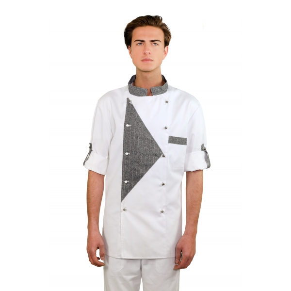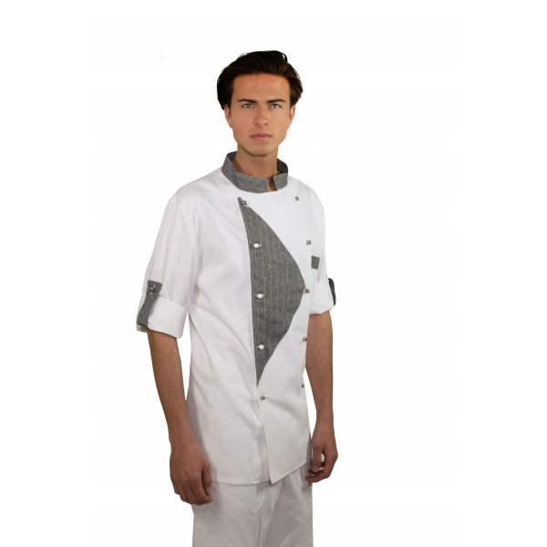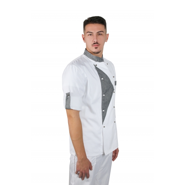 GIACCA CHEF Modello mezza manica, abbottonatura laterale con bottoni a funghetto, taschino lato cuore ,100 % cotone, 140 gr/m2, taglie disponibili S - XXL