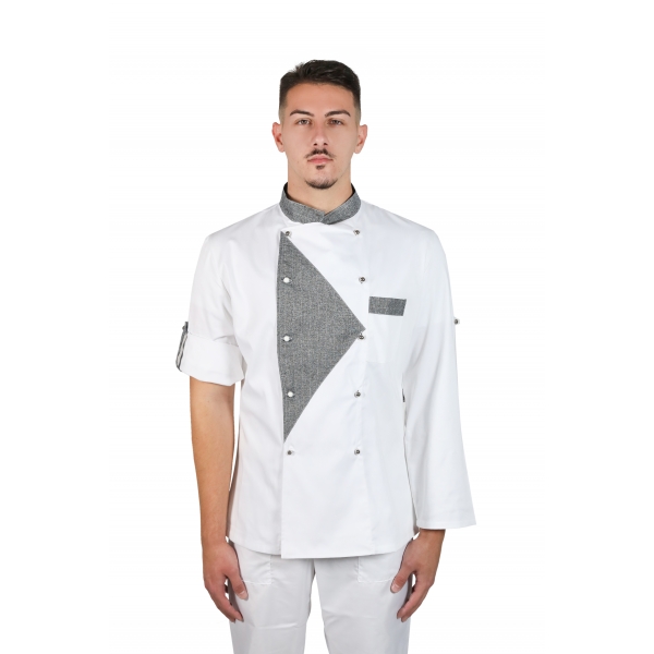 GIACCA CHEF Abbottonatura laterale, bottoni a funghetto, maniche accorciabili con bottoncino, 65% poliestere - 35% cotone, 200 gr/m2, taglie disponibili XS - XXXL