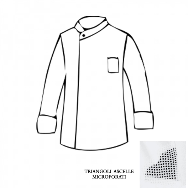 GIACCA CHEF Abbottonatura laterale con clips, taschino lato,tessuto spalle microforato, 100% poliestere, 140 gr/m2, taglie disponibili S - XXL