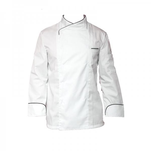 GIACCA CHEF Abbottonatura laterale, taschino braccio sinistro, bottoni a funghetto in tinta con il profilo 65% poliestere, 35% cotone 200 gr/m2, taglie disponibili S - XXL