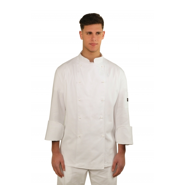GIACCA CHEF Abbottonatura laterale, bottoni a funghetto, maniche accorciabili con bottoncino, 65% poliestere - 35% cotone, 200 gr/m2, taglie disponibili XS - XXXL