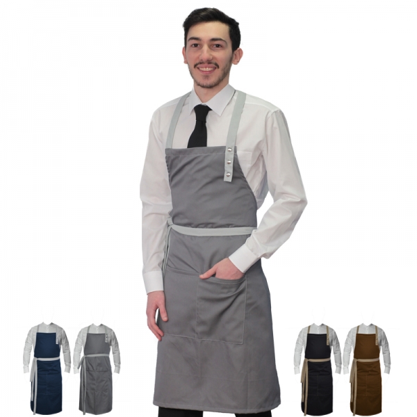 SPEDIZIONE GRATUITAGREMBIULE UOMOFASCIA COLLO REGOLABILE CON BOTTONITAGLIA UNICA100% POLIESTERE
