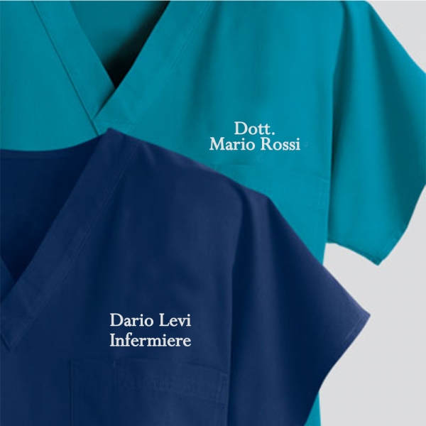 Si puo' personalizzare il capo con testo IN TERMO STAMPA (nome, cognome, mansione, nome della struttura o azienda).